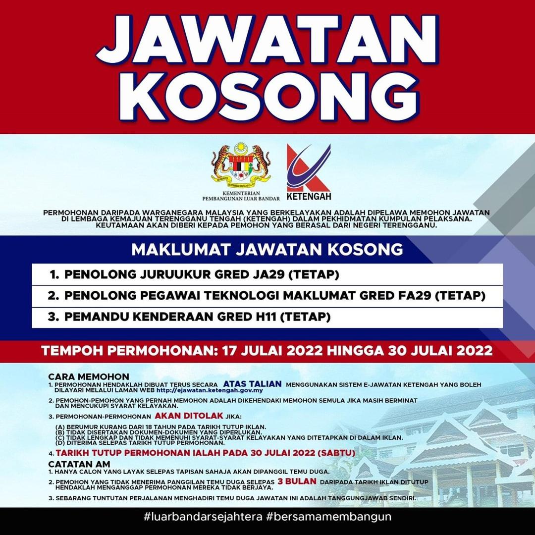 Jawatan Kosong di Lembaga Kemajuan Terengganu Tengah (KETENGAH)